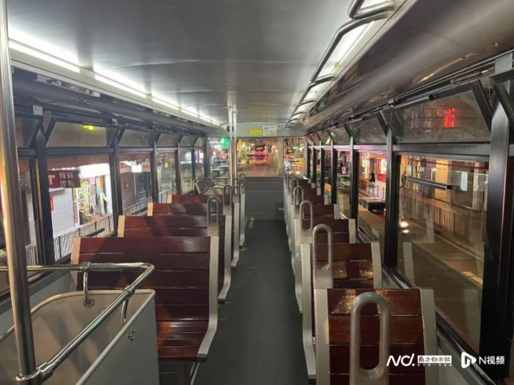 具有悠久历史的香港“叮叮”电车,其车厢内饰布局别具特色。